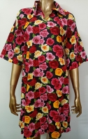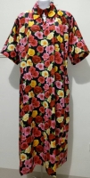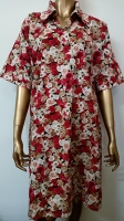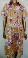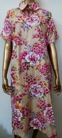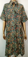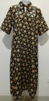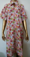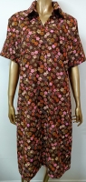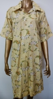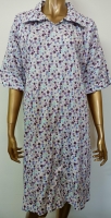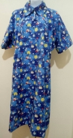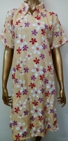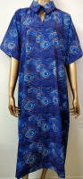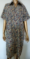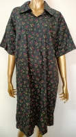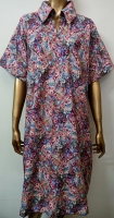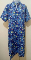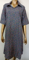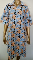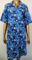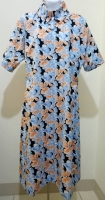 Purple Flowers Blue Leaves Shirt Sleeve Dress